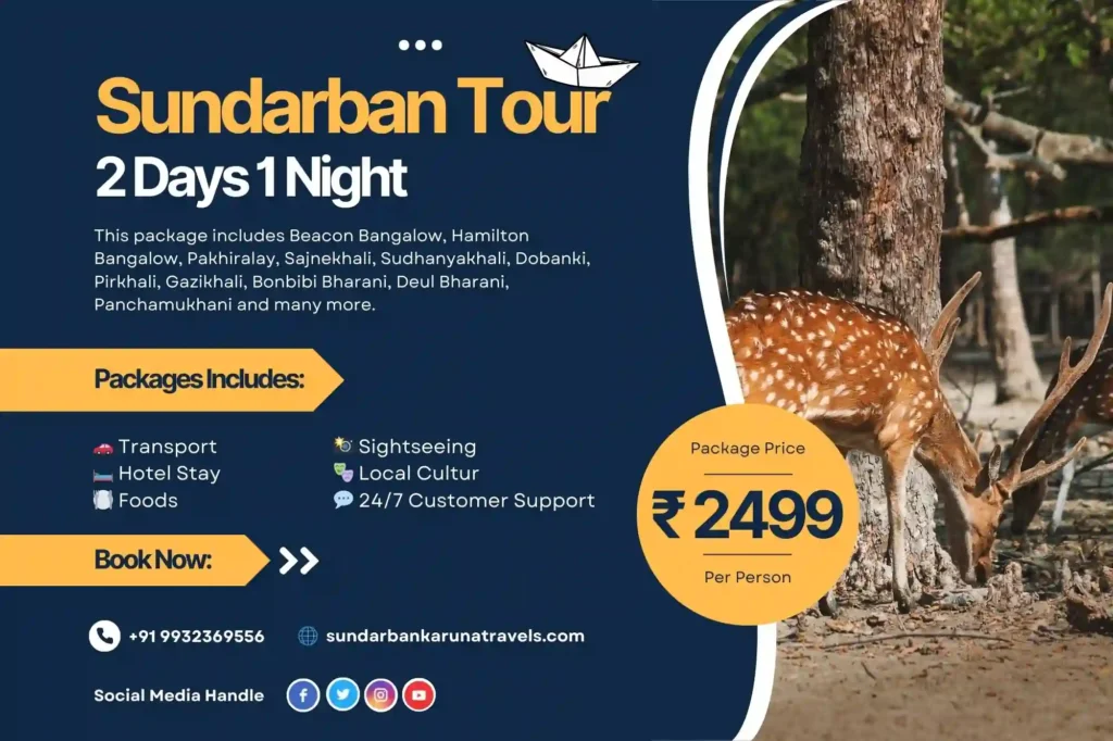 The 2 Days 1 Night Sundarban Tour Package is ideal for travelers seeking a balanced blend of adventure, comfort, and cultural discovery in the Sundarbans. This thoughtfully designed tour includes guided boat safaris through scenic rivers and dense mangrove creeks, offering opportunities to spot deer, crocodiles, birds, and other wildlife. Guests visit key forest watchtowers and important wildlife zones under the guidance of experienced, government-approved guides. A comfortable overnight stay at an eco-resort allows time to relax and enjoy the peaceful surroundings after a day of exploration. Freshly prepared Bengali meals add authentic local flavor to the experience. The package also features village interactions that reveal local lifestyle, traditions, and river-based livelihoods. With smooth transfers, safety-focused planning, and attentive service, this tour delivers a memorable Sundarban experience within a short, well-paced itinerary.